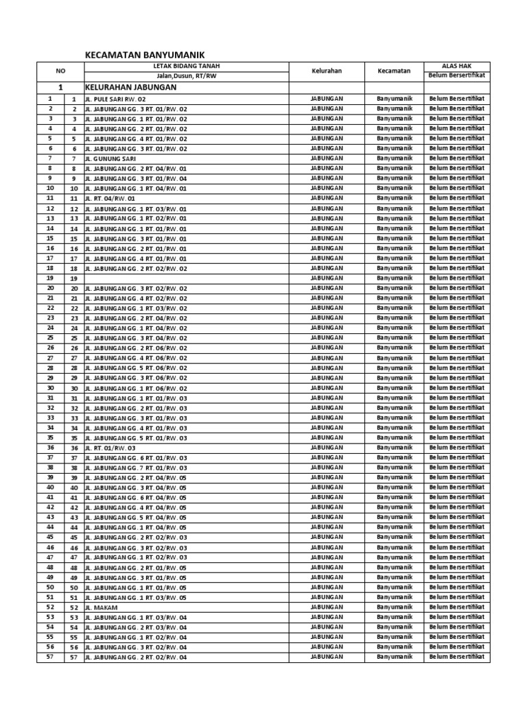 Data Tanah Jalan 4 Kecamatan Kota Semarang Pdf