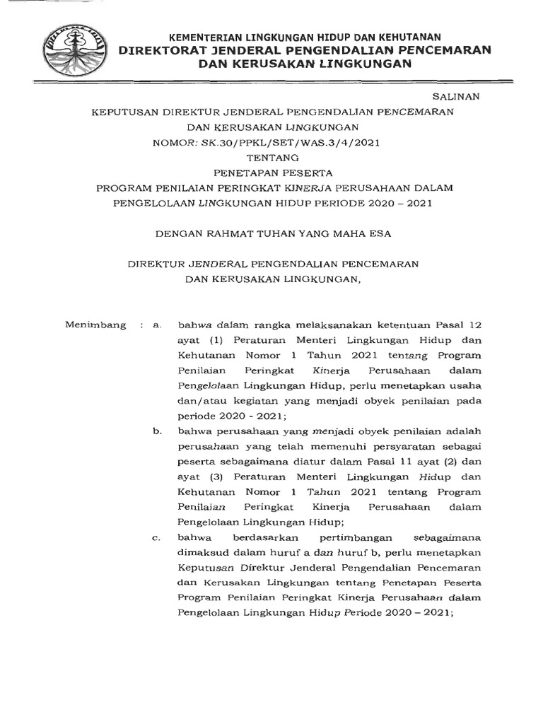 Sk 30 Penetapan Peserta Proper 2020 2021 Pdf
